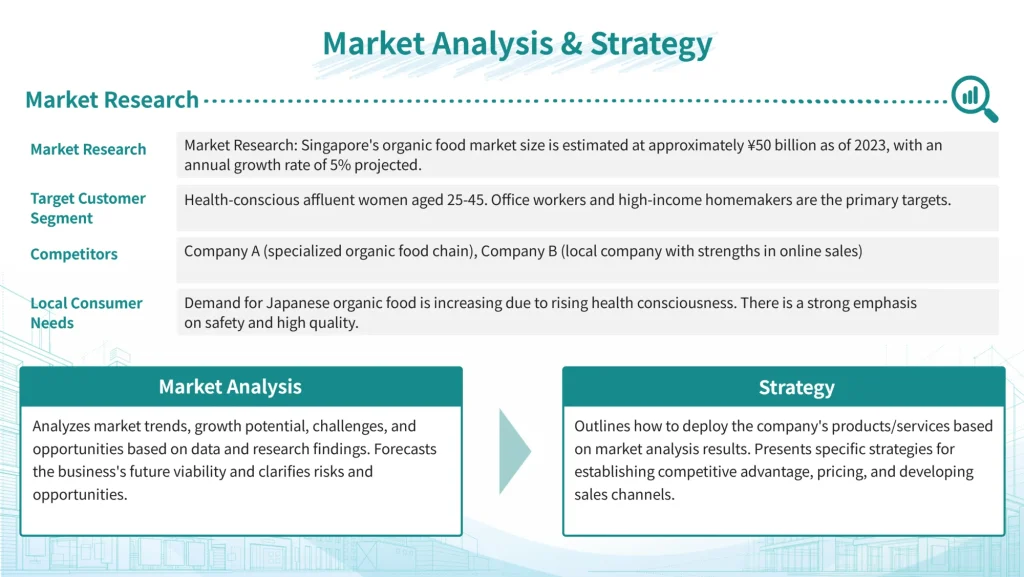 We analyze market trends, growth potential, challenges, and opportunities based on data and research findings. We forecast the future viability of the business and clarify risks and opportunities.