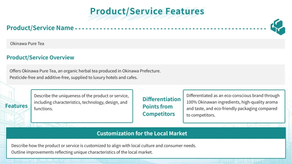 This section describes the business and service content, concept, target audience, and other details. It provides a clear and concise explanation of who this business serves, what it offers, and how it delivers those offerings.